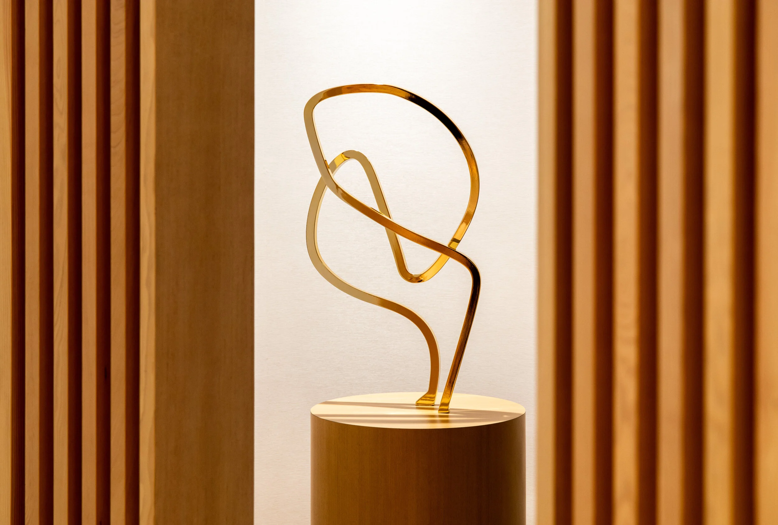 Abstract Gold / Wellesley on the ParkHeated steel curved and shaped by hand. Plated to mirror finish creating a jewellery like wall sculpture